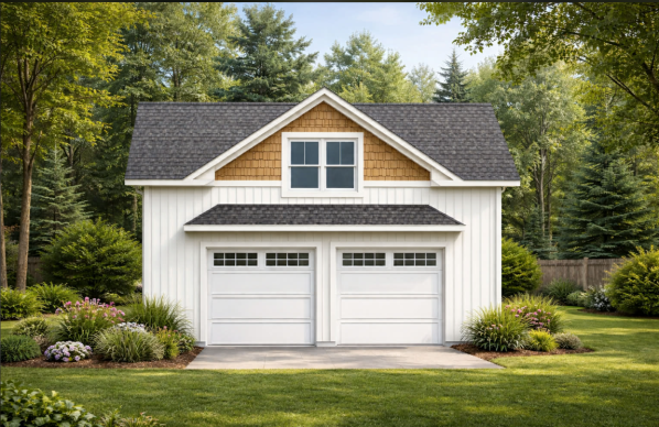 Ce garage détaché offre un espace fonctionnel et polyvalent conçu pour répondre aux besoins résidentiels modernes. Le niveau principal permet le stationnement de deux véhicules tout en conservant un espace de circulation confortable. La structure comprend également une section intérieure pratique pouvant servir d'espace utilitaire, de rangement ou d'atelier selon les besoins.