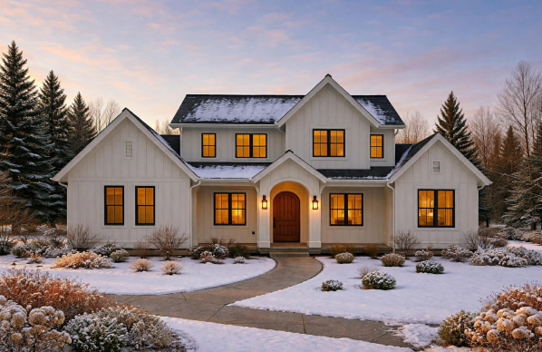 Architecture inspirée du farmhouse contemporain, alliant tradition et modernité