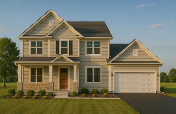 Maison classique de style américain, à l'architecture chaleureuse et équilibrée, reposant sur une fondation aménageable avec garage simple intégré. Le rez-de-chaussée comprend une entrée conviviale, un salon confortable, une salle à manger attenante à la cuisine avec garde-manger, ainsi qu'une salle de lavage et une ½ salle de bain.À l'étage, l'espace nuit offre trois chambres lumineuses et une salle de bain complète, répondant aux besoins d'une famille.